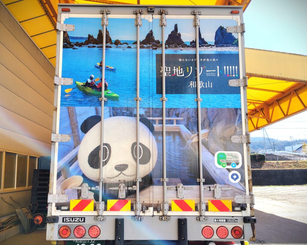 和歌山県トラック協会は、県の観光キャンペーン「聖地リゾート!和歌山」に参加しています。協会に加盟しているトラックの背面にラッピングを行っております。