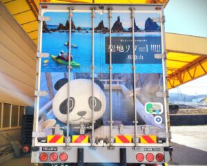 この度、当社のトラックもラッピングを行いました。橋杭岩と和歌山観光PRシンボルキャラクター「わかぱん」がレイアウトされた可愛いデザインとなっております。もし街中で見かけた際は、ぜひご覧ください。